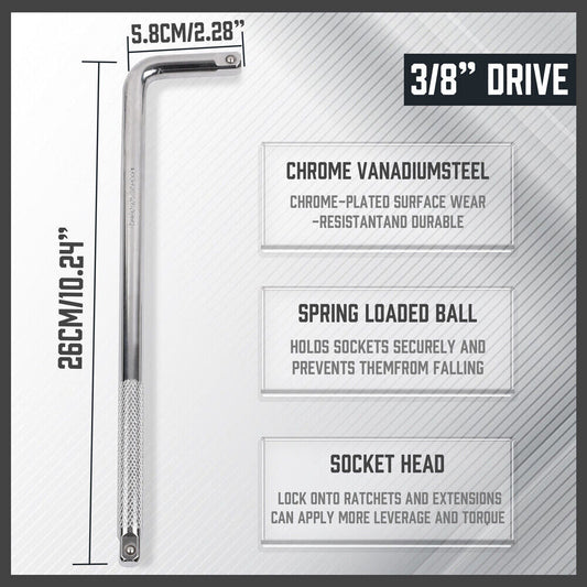L Shape Socket Extension Bar 1/4" 3/8" 1/2" Drive Wrench Breaker CR-V Anti-Slip Set of each size
