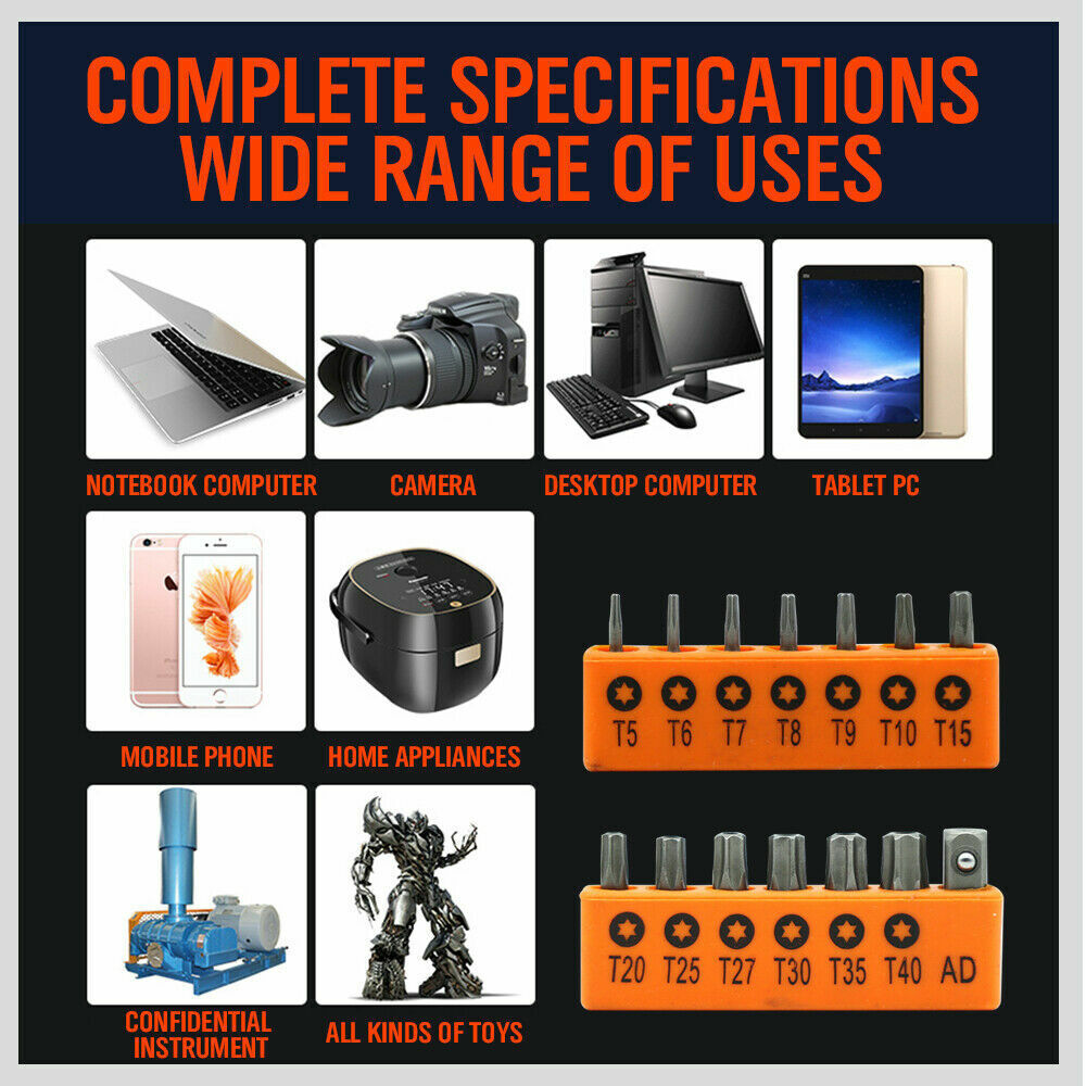 14Pc Torx Key Bit Set Tamper Proof Star Wrench Bits T5-T40 Socket Adapter S2 New
