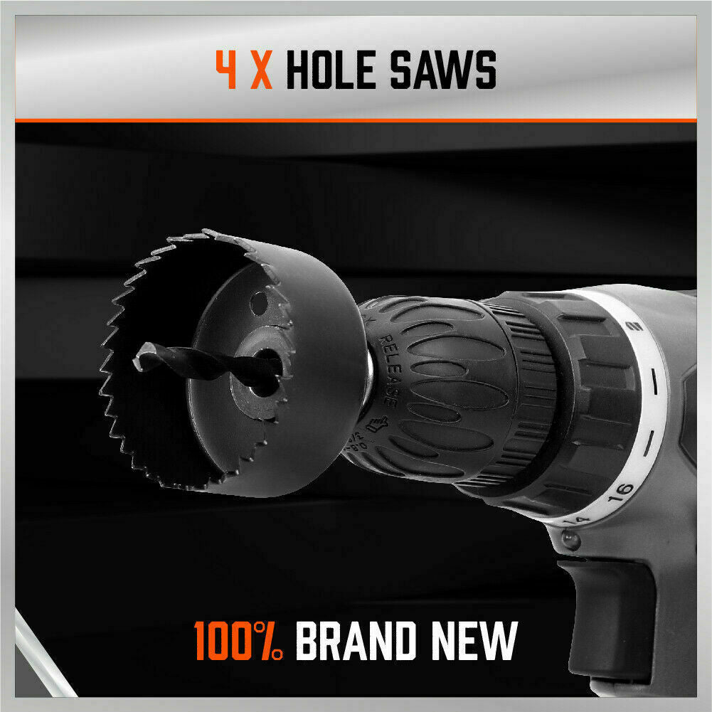 - 4 x HOLE SAWS: 1-1/4", 1-1/2", 1-3/4", 2-1/8"