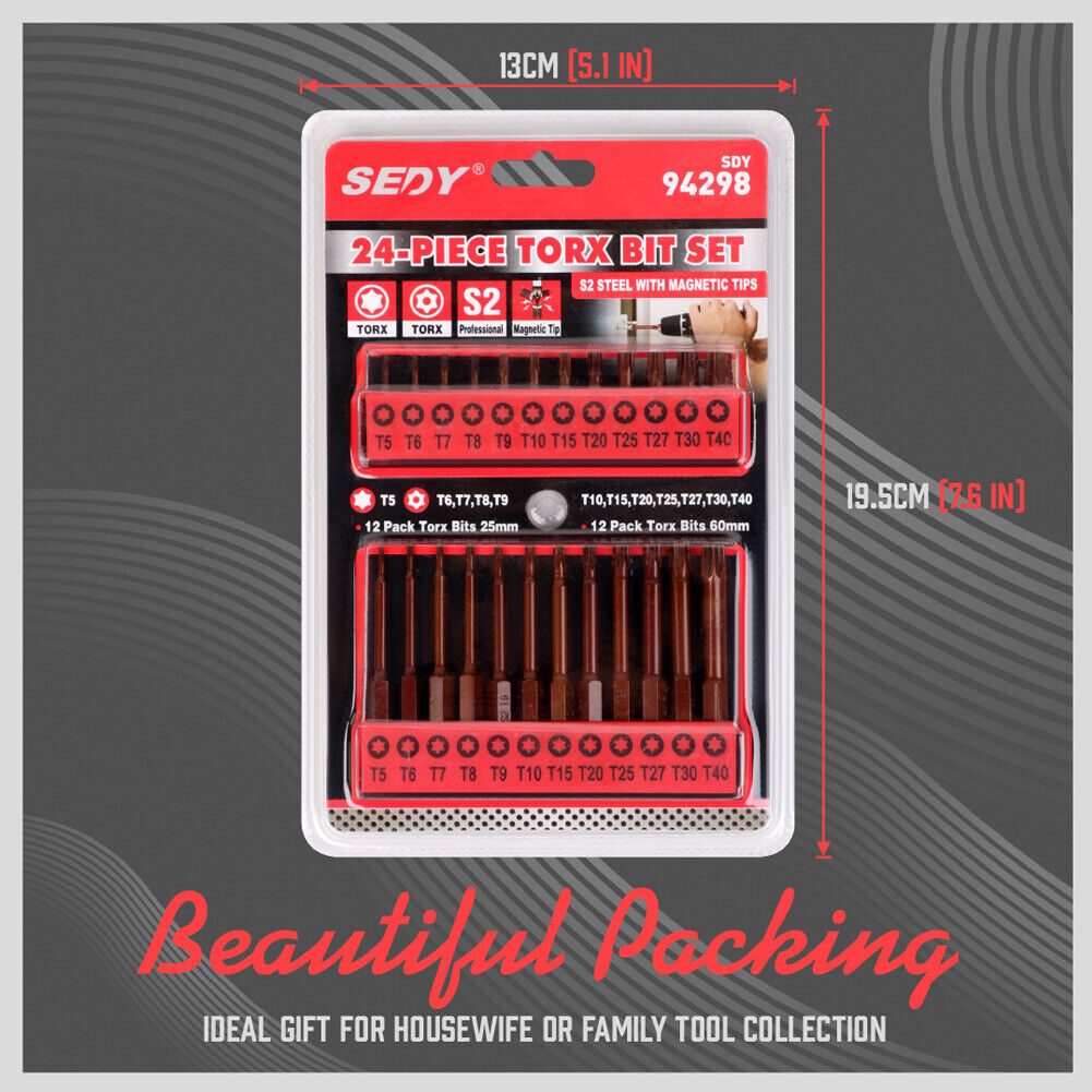 24Pc Torx Bit Set Star Head Screwdriver Bit Long Security Temper Proof T5-T40