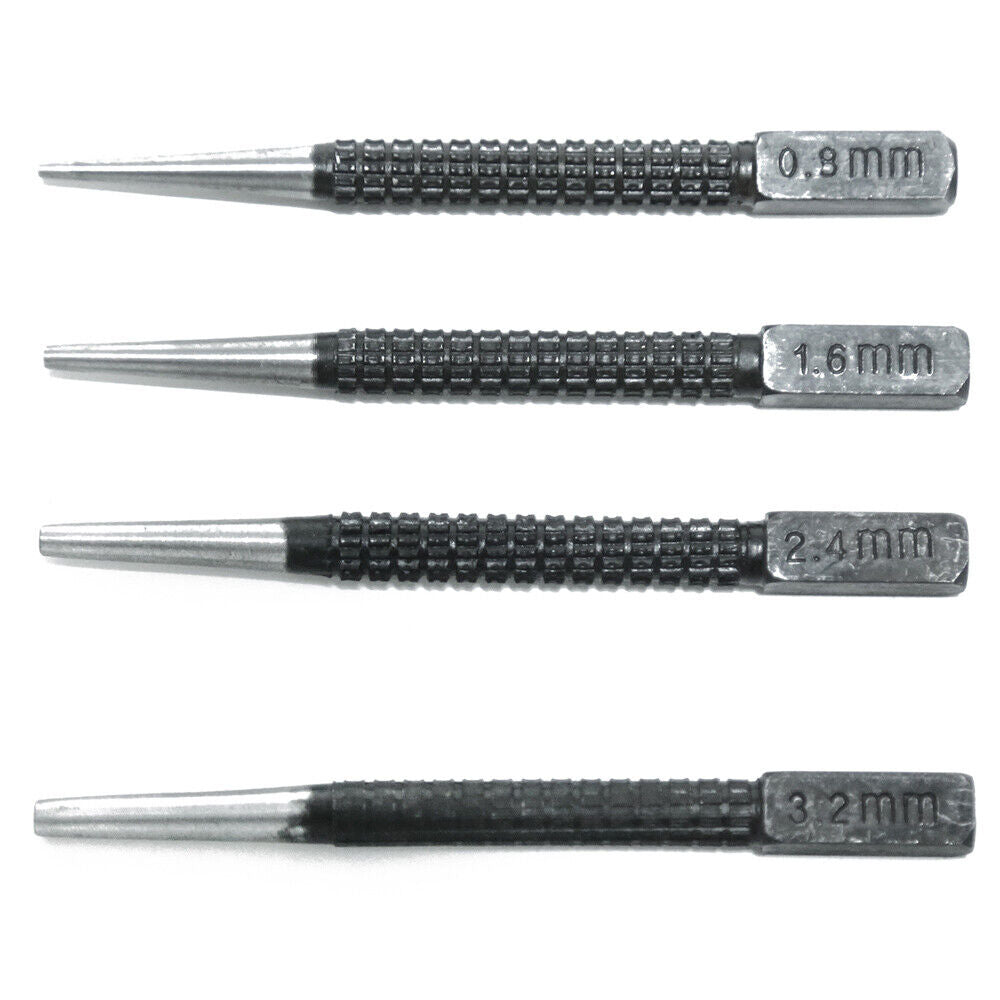 4Pc Nail Punch Set Heavy Duty Solid Steel Hole Punching Leather Gasket 0.8-3.2mm