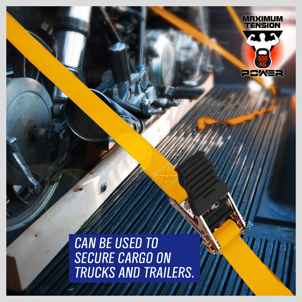 4Pc Ratchet Tie Down Strap Set 25mm x 5m Heavy Duty 500kg Capacity Commercial