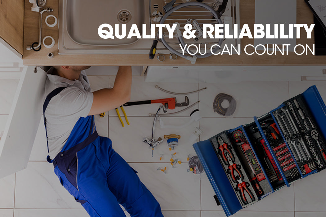 Have every odd-job and task around your home covered with the Bullet 118 Piece Cantilever Tool Box. This comprehensive metric tool kit comes with a huge assortment of practical tools ranging from sockets and pliers to hex keys and a handy cordless screwdriver. Made from high-quality chrome vanadium, these are dependable and enduring tools that perform to an exceptional standard. The box itself is built with a high tensile powder coated steel enclosure to withstand knocks that may occur during the course of work or transport.