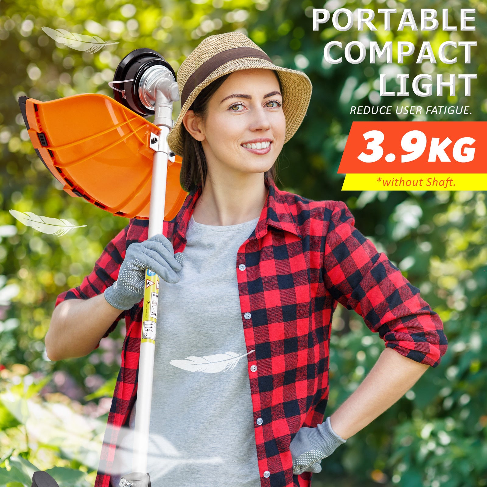 This 43cc Brush Cutter is an extremely lightweight and professional cutter with plenty of power. The Ergonomically designed double handle handles create unsurpassed balance, absolute safety and manoeuvrability. Powerful engine with rapid acceleration brush cutter for forestry business. Utilising premium Commercial Alloy, features a commercial grade quick connect couplings equipped with dual ball-bearing floating centres. espite Correctly Sized 182cm Long, genuine commercial fastening ensure superior stability - essential for safely handling.