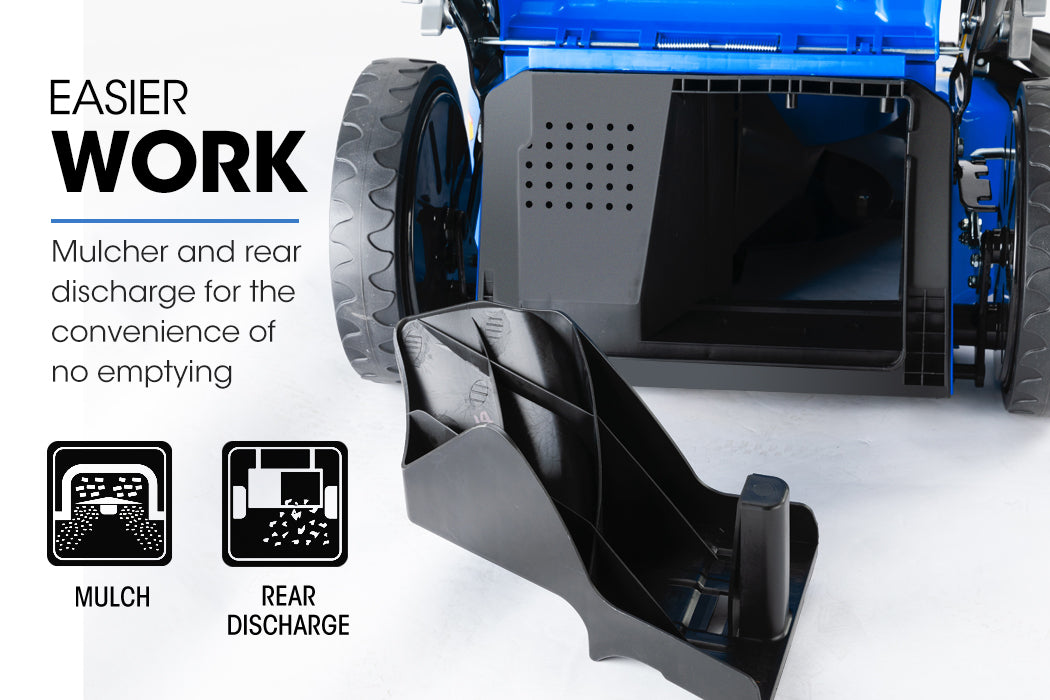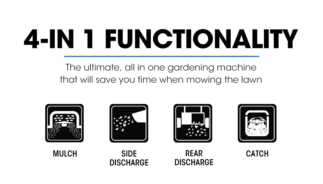 Absolute world class quality is complemented by all the features you need; an integrated drink holder, steel bumper bar and quick release folding handles. 4-in-1 functionality offers the option of catching, mulching, direct side discharge or direct rear discharge, while the self-propelled design ensures mowing is a leisurely stroll. And with CrossCut swing blades you'll always end with a perfectly cut lawn that your neighbours will envy!