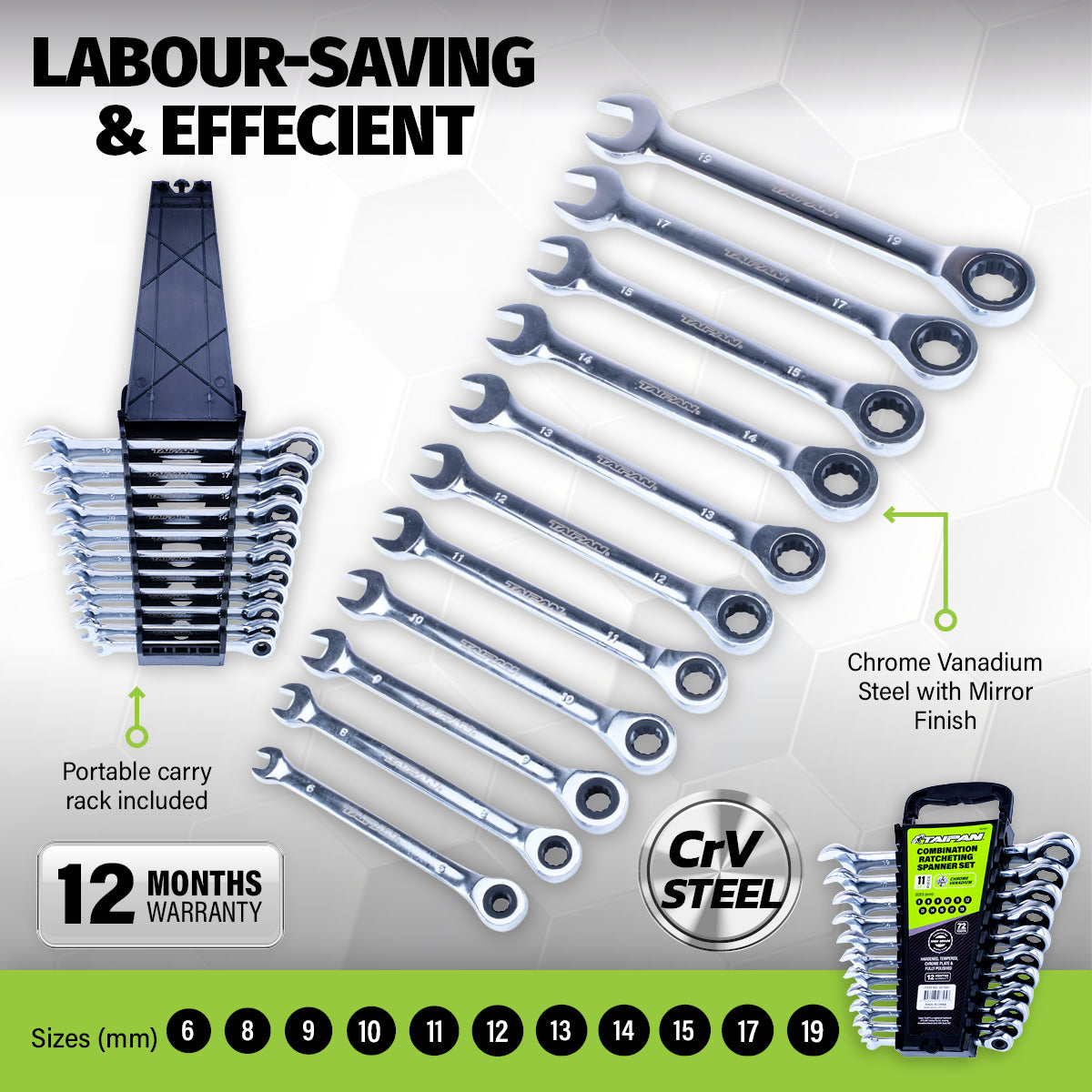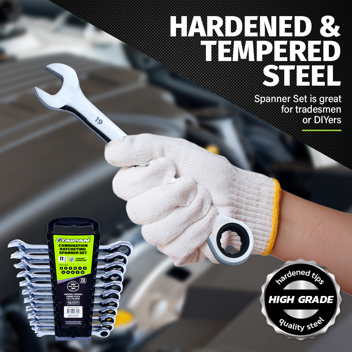 Taipan 11PCE Ratcheting Spanner Set Premium Quality Chrome Vanadium Steel