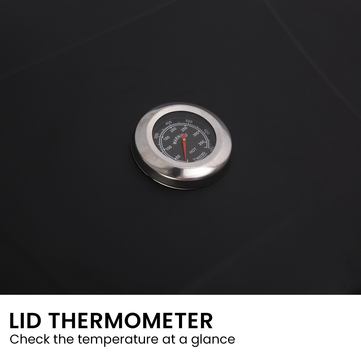 - Lid thermometer and adjustable charcoal tray